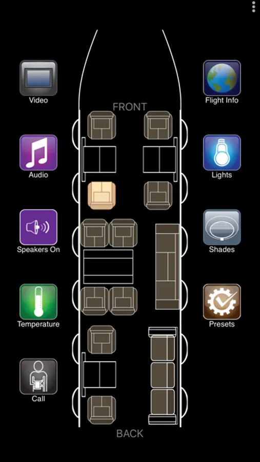 Using the system's intuitive screens and menus, you can easily design an environment that reflects your requirements for that particular flight. You can dim the lights and watch a movie, all with the simple flick of a finger. Even better, each of your passengers can do the same, since the app can be synched to a particular seat on your aircraft's floor plan.