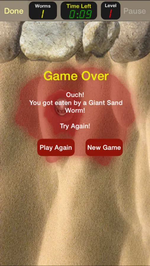 Can you make it safely to the rocks without getting eaten by the Giant Sandworms, or hitting too many Baby Sandworms?
