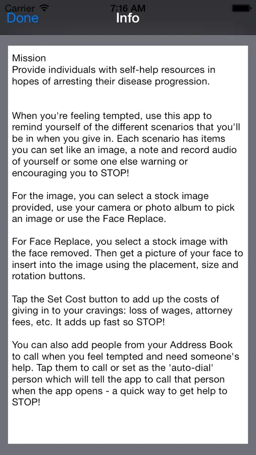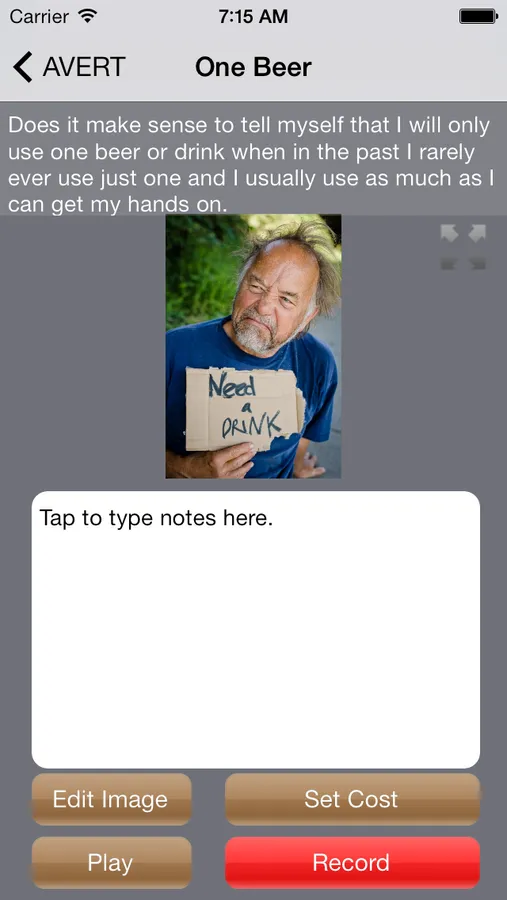 FREE download! Addiction AVERT is a substance abuse craving reduction technique that can help individuals challenge cravings in the immediacy by bringing up realistic events and situations that will happen if they choose to use drugs, alcohol or smoke and what they will lose. AVERT can be customized to help motivate an individual’s personal recovery program and works with a sponsor.