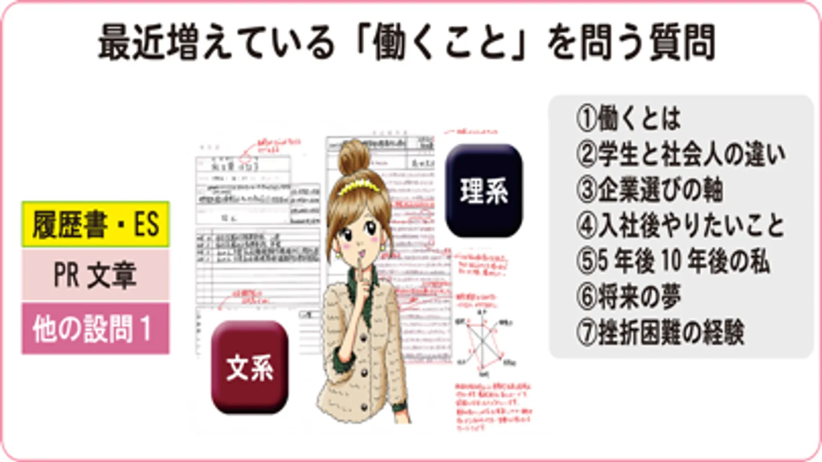 単語の定義だけでなく、就職活動への影響まで詳しく指導解説しています。