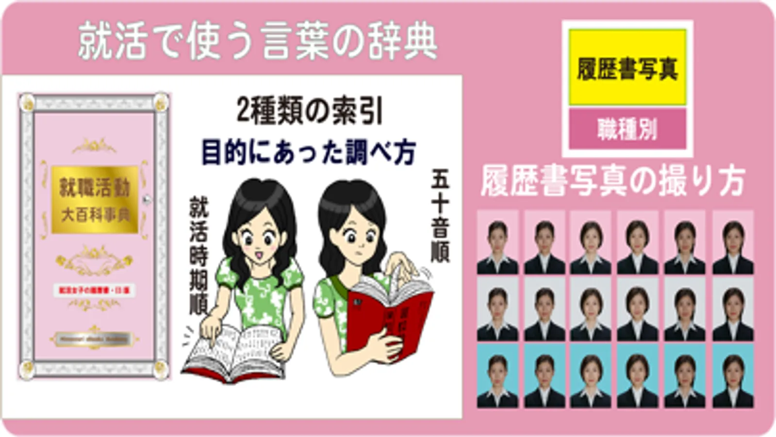 進路選びから入社後まで、17カテゴリー400を越える単語を収録しました。