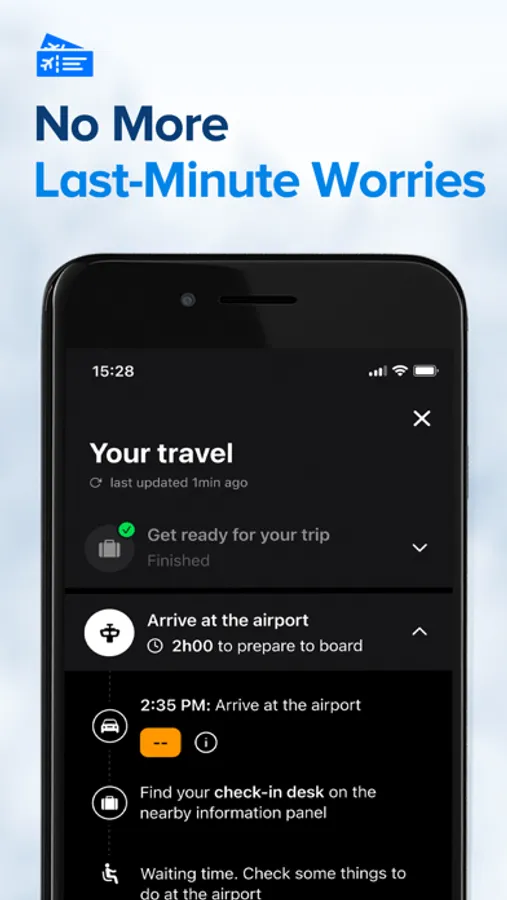 Be aware of every travel step with a simple 48-hour countdown from flight tracking to plane landing.