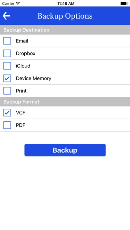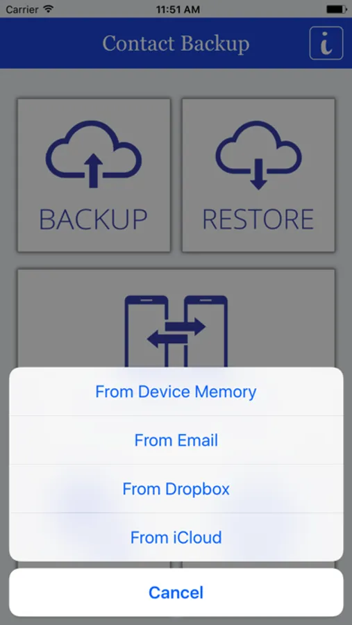 Backup your contacts in a simple and convenient way. You can backup all your contacts to E-mail / Dropbox. All contacts are in vcf format which will be supported by most smart phones (Android, Blackberry) and iOS devices (iPhone, iPad). You can import contacts by just downloading it from your mail. As the vcf file is in your mail, your privacy is maintained.