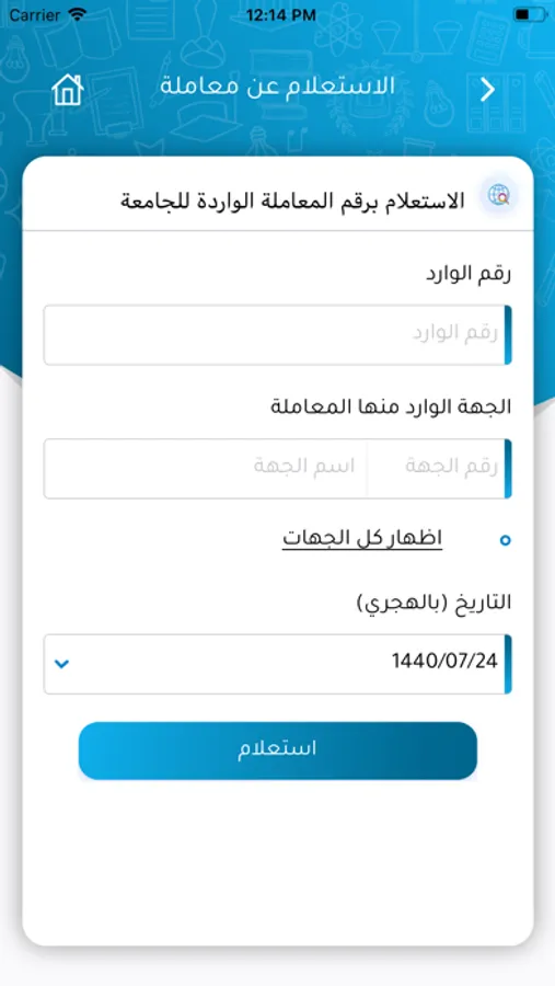 - الاستعلام عن معاملة برقمها الوارد إلى الجامعة مع التاريخ والجهة الواردة منها