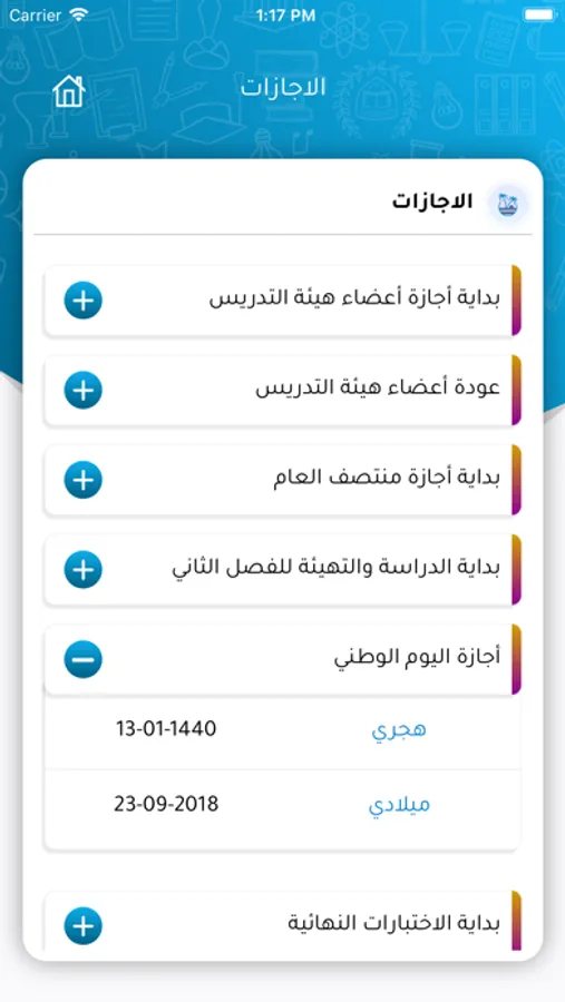 - الاطلاع على التقويم الجامعي والاجازات الرسمية المعتمدة فيها