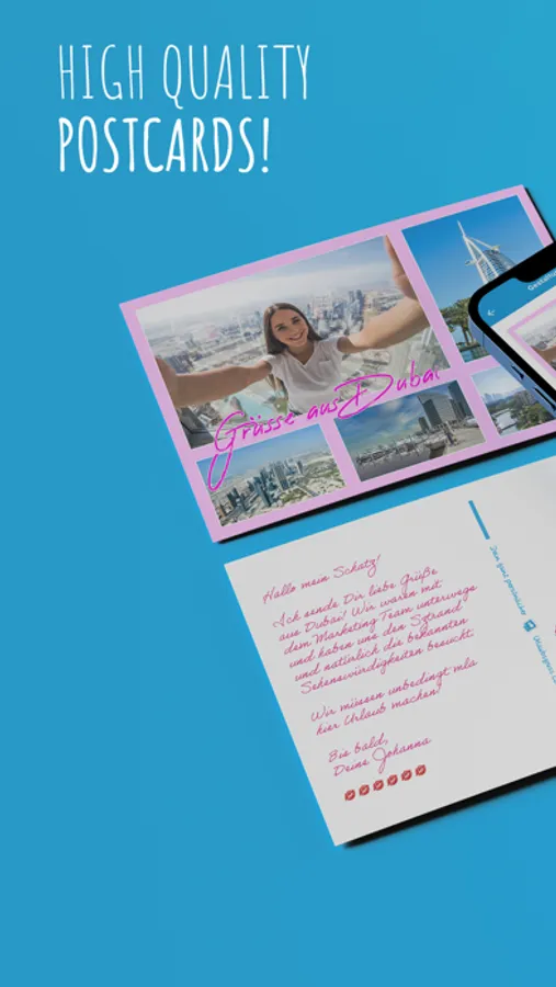 With the postcards app of urlaubsgruss you send your own pictures as a REAL photo postcard. With just a few clicks you can design your personal holiday greeting.
