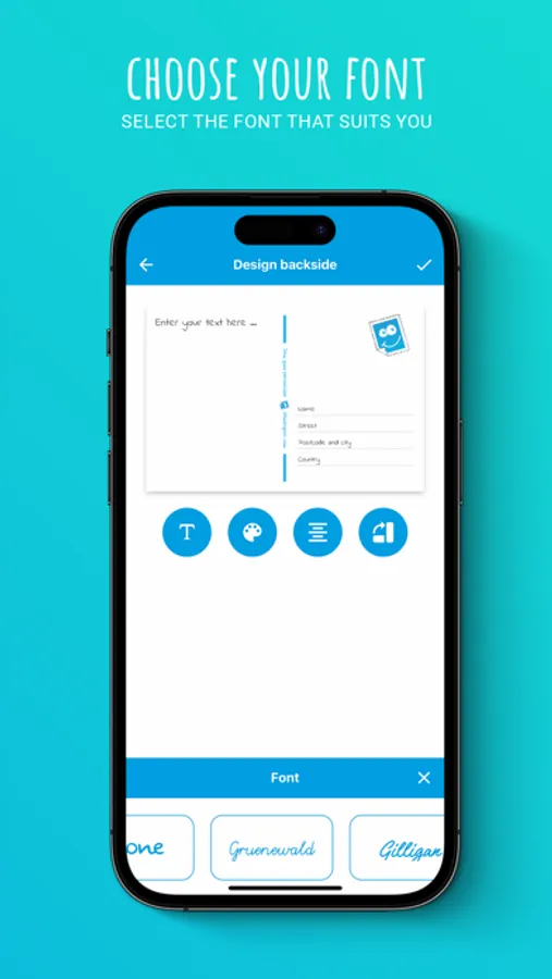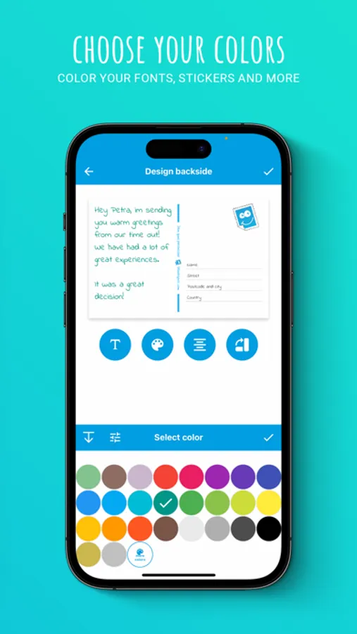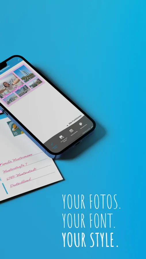 All postcards get a real stamp and can even be written completely with your own handwriting.