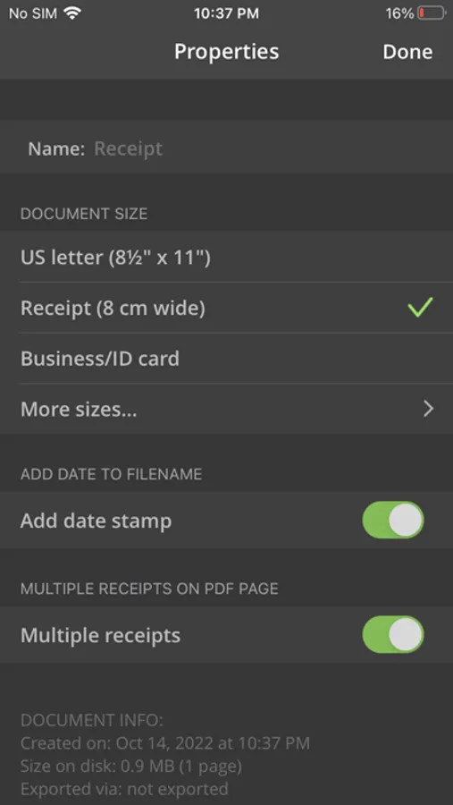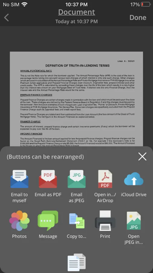 • Email or message documents as PDF, JPEG, or PNG, or save to Photos