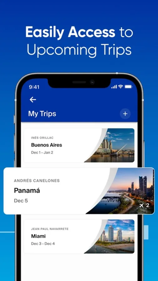 Keep track of your upcoming trips, view all the details and updates of your flights, and access useful functionalities at the right time, such as: