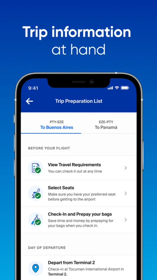 In a few simple steps, you can save time at the airport by doing check-in from the comfort of your home. You can access your boarding pass whenever you need it directly in the app.
