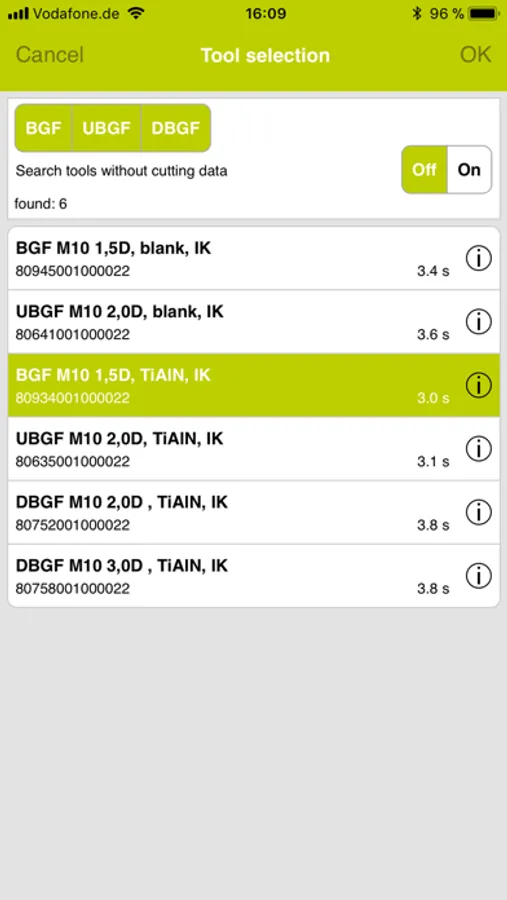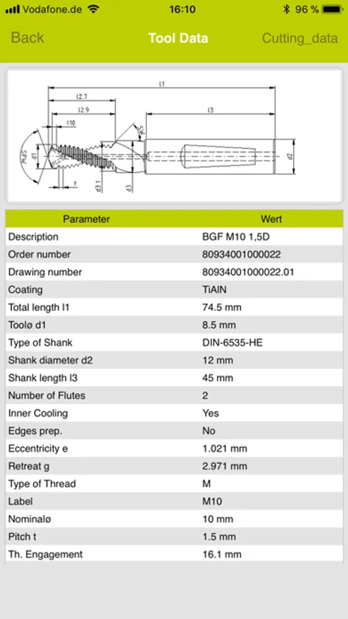 TPT mobile is listing you all suitable standard thread milling cutters, respective drill-/thread milling cutters after you have inkeyed your threading application.