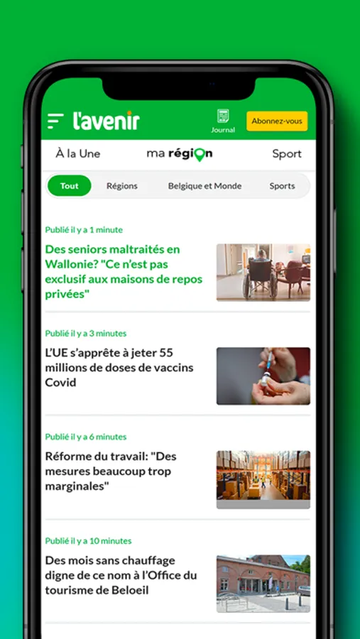 Pour les utilisateurs d'iPhone, iPad et iPod Touch, l'app gratuite Lavenir.net mobile propose toute l'information 24h/24 et 7j/7 avec l'actualité de votre commune, de votre région, de Belgique et du monde : actu, politique, société, sports, faits divers… avec des live, des photos, des vidéos, des infographies, des grands angles, des cartes interactives...