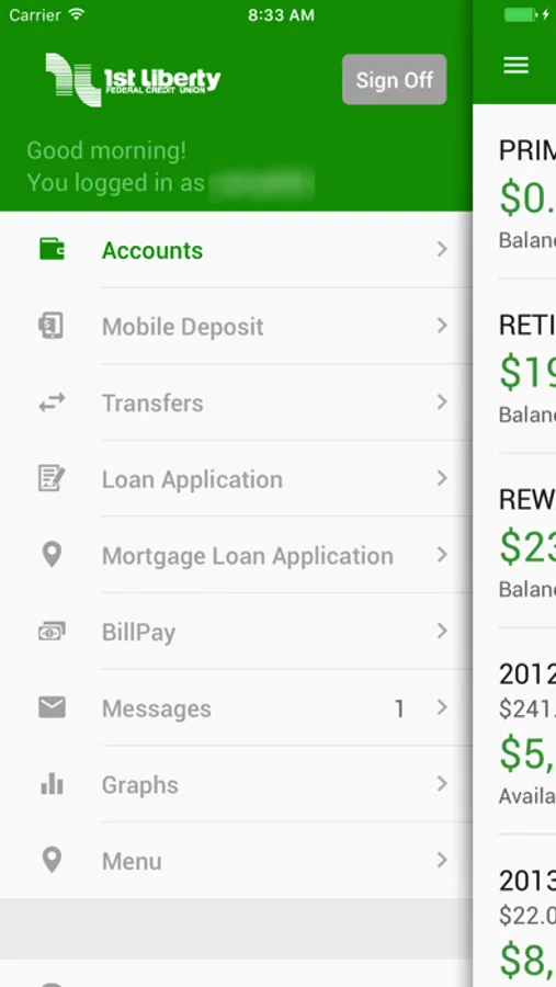 1st Liberty FCU Mobile Banking allows you to check balances, view transaction history, transfer funds, deposit checks, and pay loans on the go!