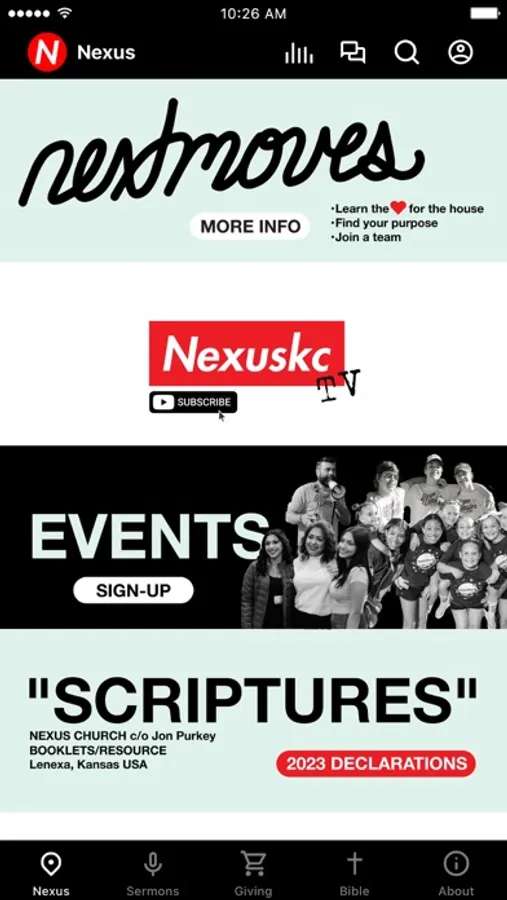 Welcome to the official Nexus Church app. Nexus Church is all about spreading the love of Christ to a lost and dying world. The Nexus Church app features powerful content from Pastor Jon Purkey, who leads Nexus Church in Lenexa, Kansas.