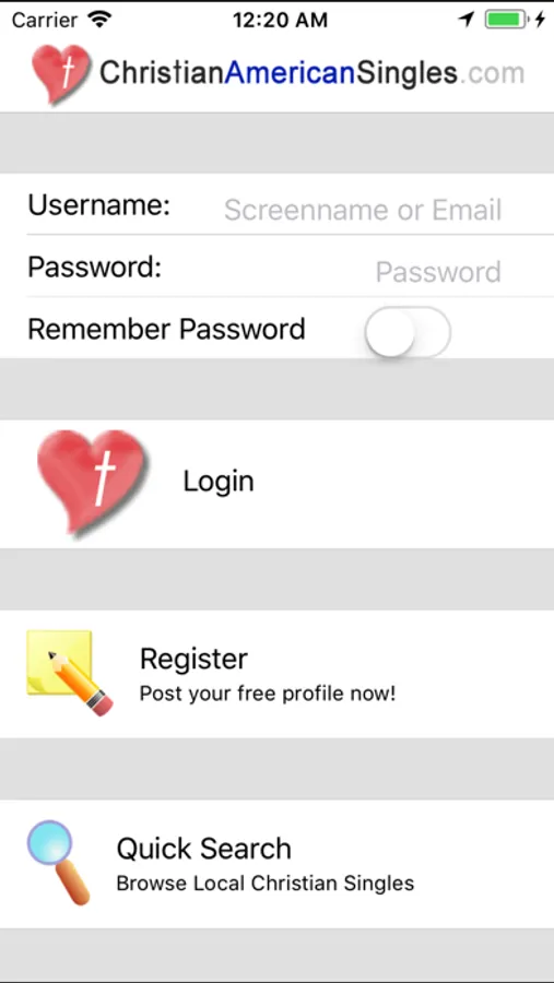 Find other Christian singles on the ChristianAmericanSingles.com iPhone app. You may post your profile, upload photos, browse, email, chat and mingle with other Christian singles near you. No monthly fees or nickel-and-diming, just pay for the app once and use it for life with open communications with other Christian singles near you.