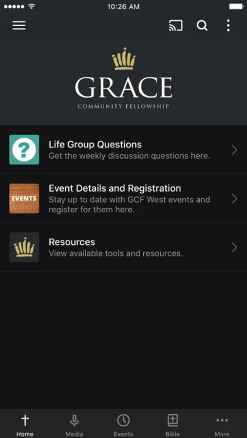 The GCF West App was created with the Subsplash App Platform.