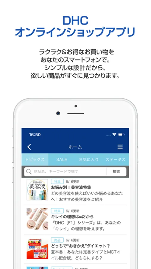 DHCオンラインショップアプリは、DHCの化粧品、健康食品、ダイエットなどの商品を、スマートフォンから簡単にご注文できるショッピング専用アプリです!