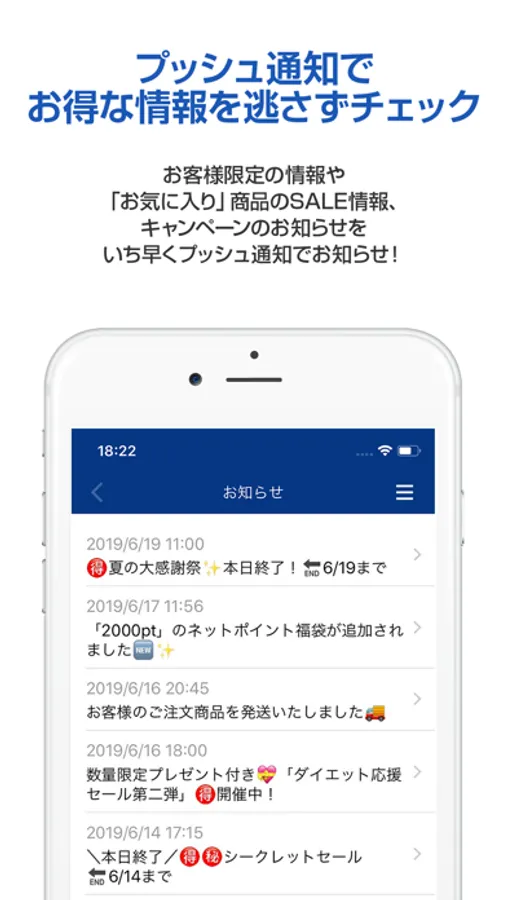 ・最新情報やアプリ限定クーポン、お客様情報をプッシュ通知でお知らせします。