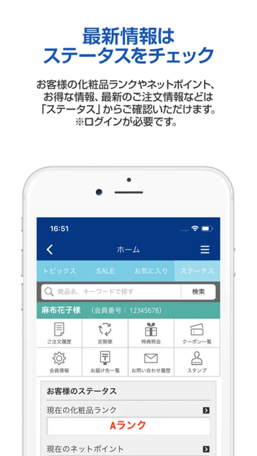・自動ログインをオンにすると、お客様限定の情報をステータスでご確認いただけます。