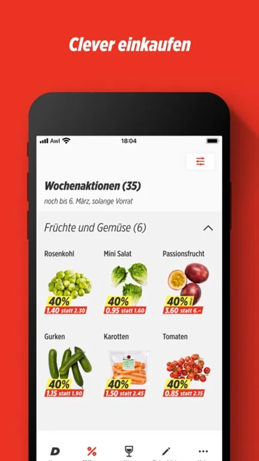 Bleiben Sie jederzeit über alle aktuellen und kommenden Denner Aktionen, Wochenend-Knaller und Weinaktionen informiert. Dank dem praktischen Aktionsalarm verpassen Sie nie mehr einen Rabatt auf Ihre Lieblingsprodukte. Und mit der Weiterempfehlungsfunktion können Sie Aktionen sogar schnell und einfach mit anderen teilen. Passen Sie die App individuell Ihren Wünschen an und sehen Sie nur Aktionen, die Sie auch wirklich interessieren.