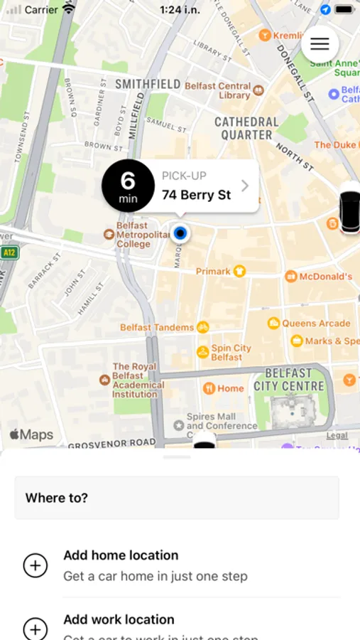 Track your car as it arrives on a map or call the driver when he's nearby. No more guessing where your Cab might be.