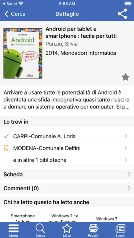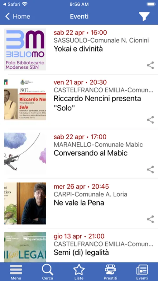 With BiblioMO you can search the library catalogue for books and documents in libraries in the province of Modena and the University of Modena and Reggio Emilia. You can: