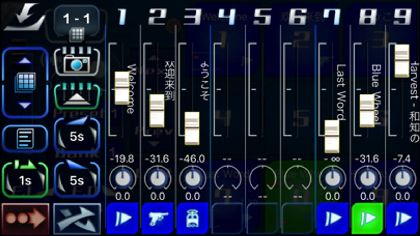 Different arrangements are possible through the four play modes, looping, two group modes, and in addition, and fading in and out.