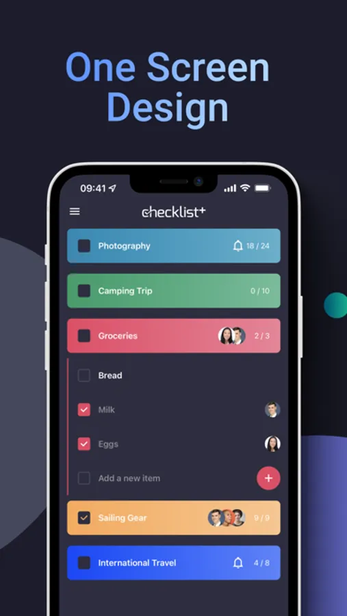 Creating lists shouldn’t be complicated. Tap + to create a new list. Tap a list to open it. Tap + to add new items to that list. Swipe left on a list title to edit your lists, share with friends and access more advanced features.