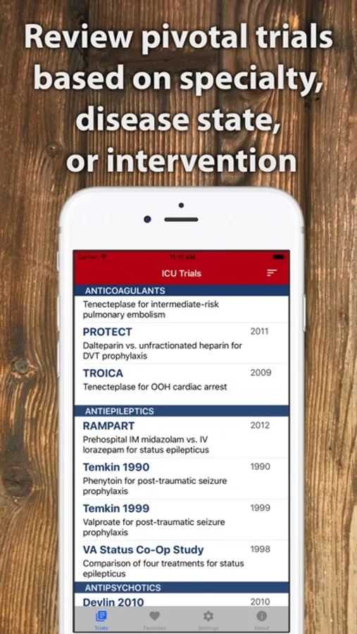 ICU Trials is a quick pocket reference for both the novice and seasoned critical care clinician. This app does not replace the original manuscript of these landmark critical care trials – instead, it serves as a fast reference and learning tool for some of the most important ICU trials over a wide range of specialties.