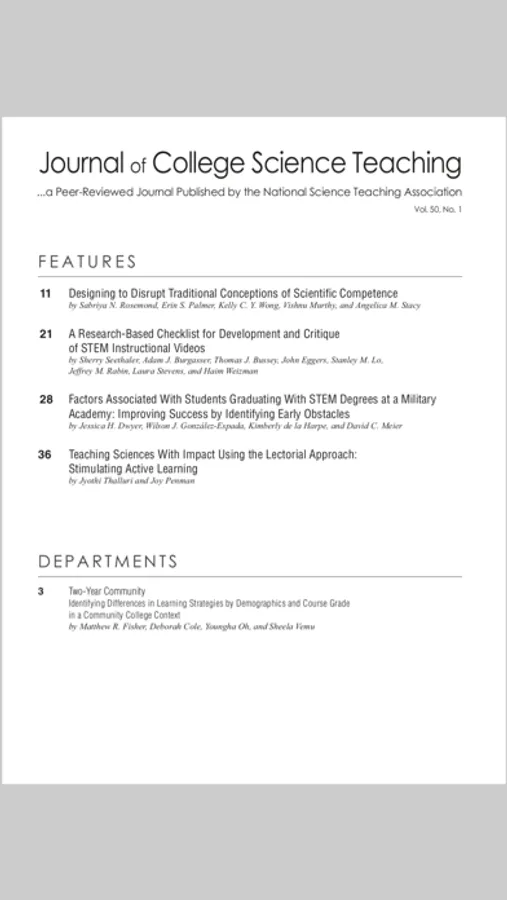 The Journal of College Science Teaching is a professional journal for college and university science education personnel concerned with the teaching of science in college. It is a member benefit.