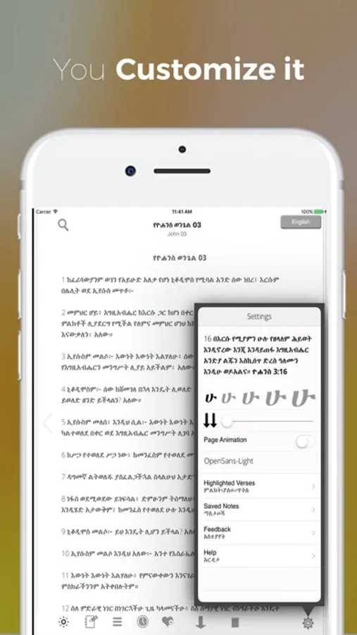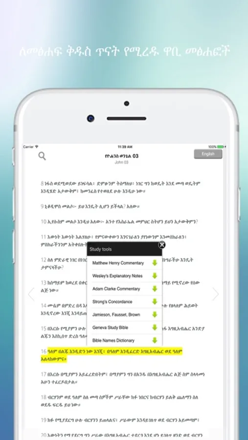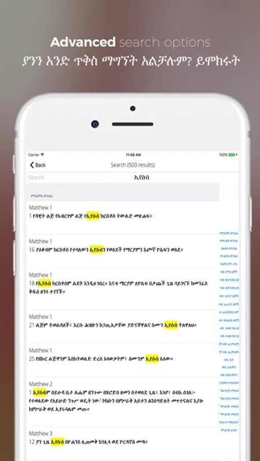 The Holy Bible in Amharic features the old Amharic Bible version or the Haile Selassie 1962 version, presented alongside the KJV English version. This powerful combination caters to the Amharic-speaking community, utilizing the capabilities of your Apple device.