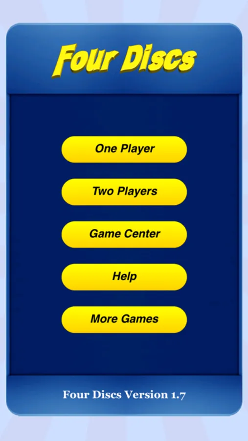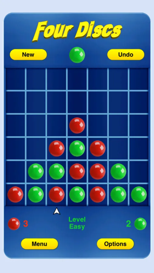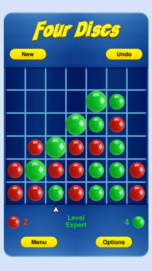 There are four levels of difficulty: Easy, Medium, Hard and Expert. The Easy level is great for kids but the Expert level is hard for gamers to beat. If you make a mistake or want to change your strategy, Four Discs lets you undo any of your moves.