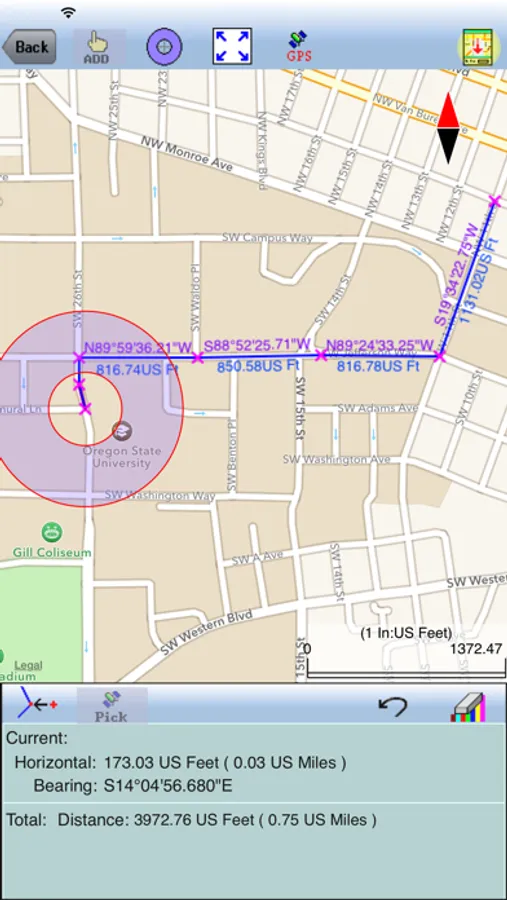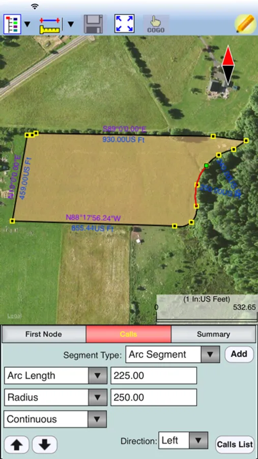 “Deed Calls - Area - Perimeter” is a handy universal app for iPAD, iPhone and iPod touch that lets you easily convert real property description into a boundary map. This app will let you specify the starting point, units of measure and label attributes, then draw the property boundary as you enter the angles and distances. It will display the angles and distances as well as the closure error, total area and perimeter. You may email the deed calls file (*.dcf), or output the deed calls and drawing as a PDF file. If your device has GPS capability, you may pick the GPS location as the point of beginning. Please note: Location data depends on the GPS receiver used. Continued use of GPS running in the background can dramatically decrease battery life. The Deed Calls app will let you easily toggle the built-in GPS on or off. This app comes with a built-in help file.