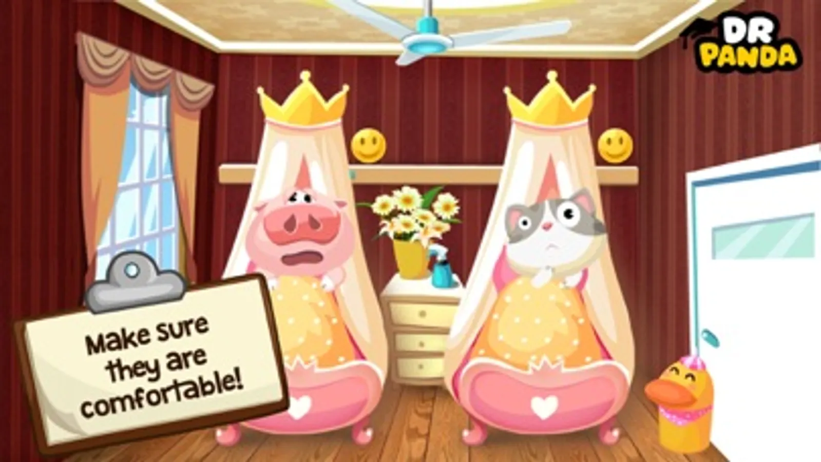 Clean the hospital, open a window or tap on the radio to make the animals feel comfortable and happy!