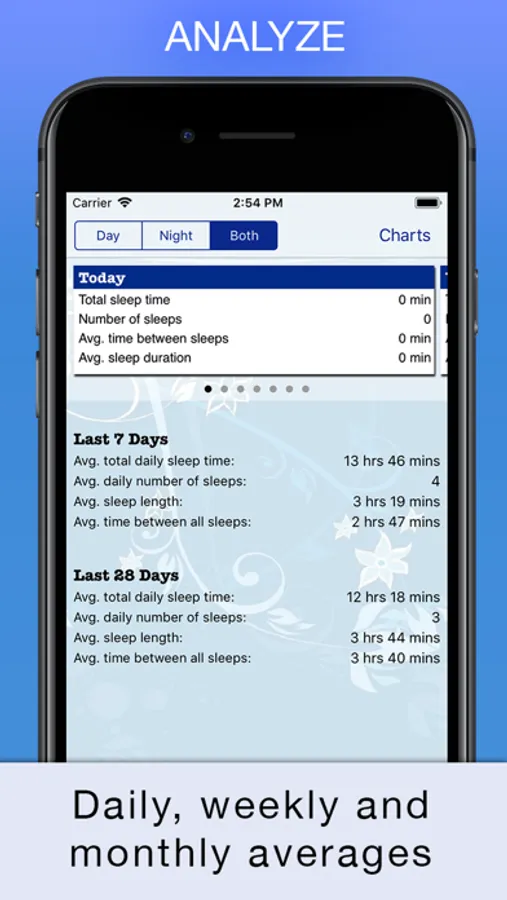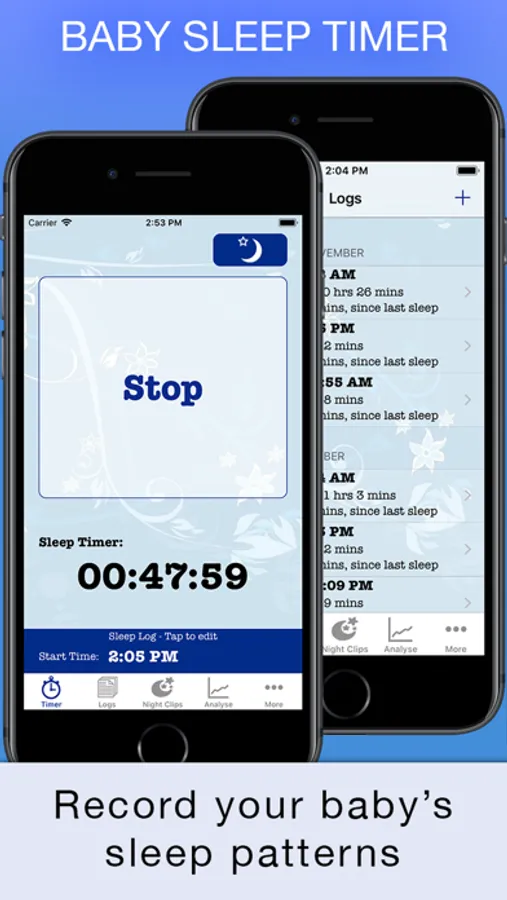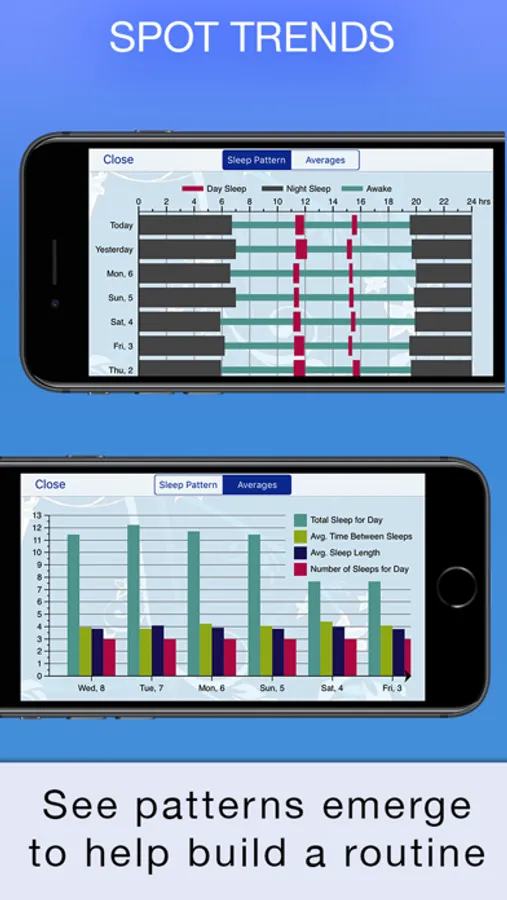 √ Easy to view graphs of Baby's sleep pattern over the last 30 days.