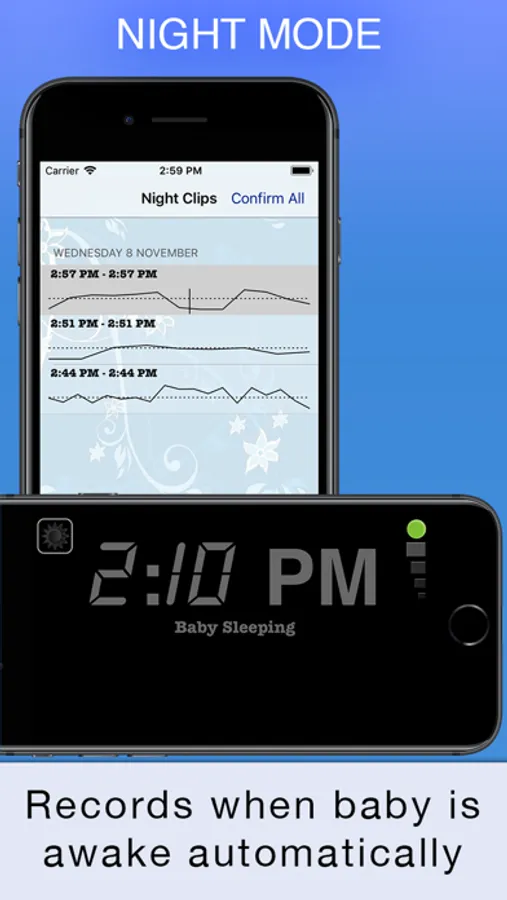 With both a Day Mode to capture daytime naps, and an automatic Night Mode to listen for and record baby's night awakenings.