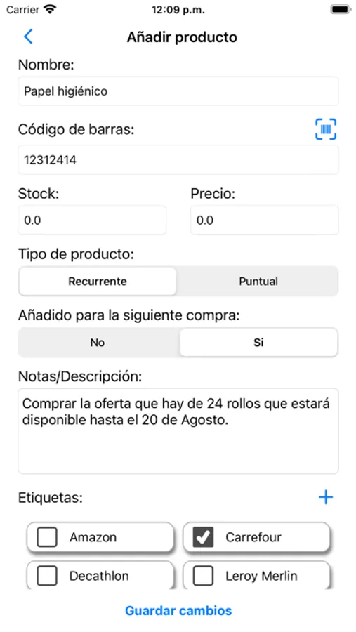 - Planificación de Compras: Marca productos puntuales o recurrentes, y prepáralos en tu carrito.