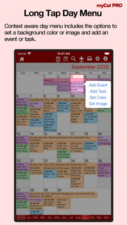 * Day background colors or images requires an InApp purchase. Event background colors is included, no InApp purchase required.