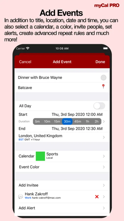 • Uses the internal calendar as its database, no additional syncing required. Any iCal subscriptions already created will be visible in myCal PRO