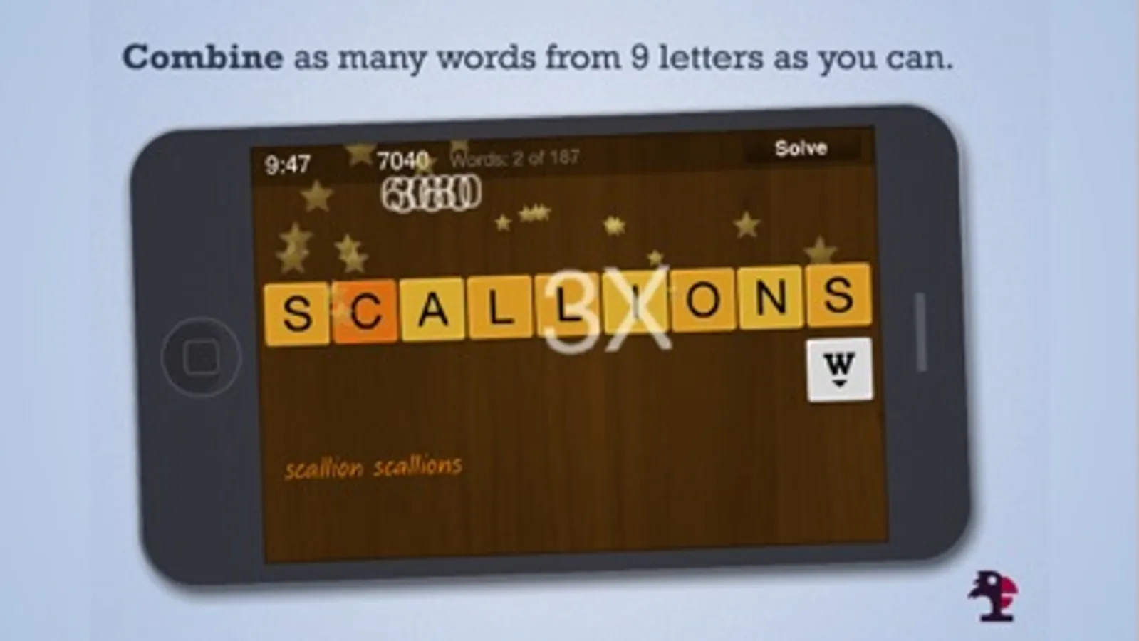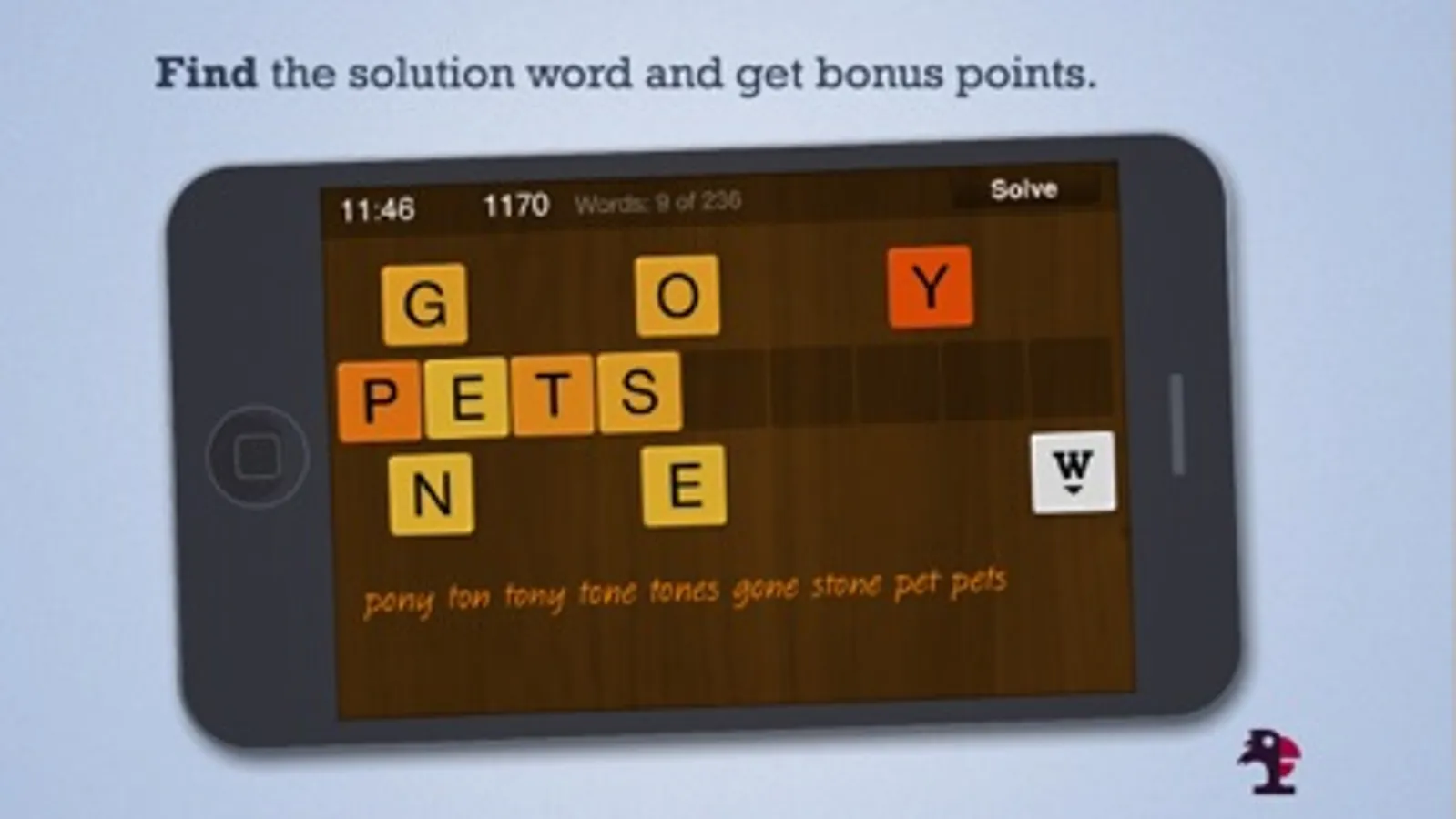 For each game there is one solution, combined from all nine letters. If you find this word, you are awarded with a special bonus: 10-times the normal word score.