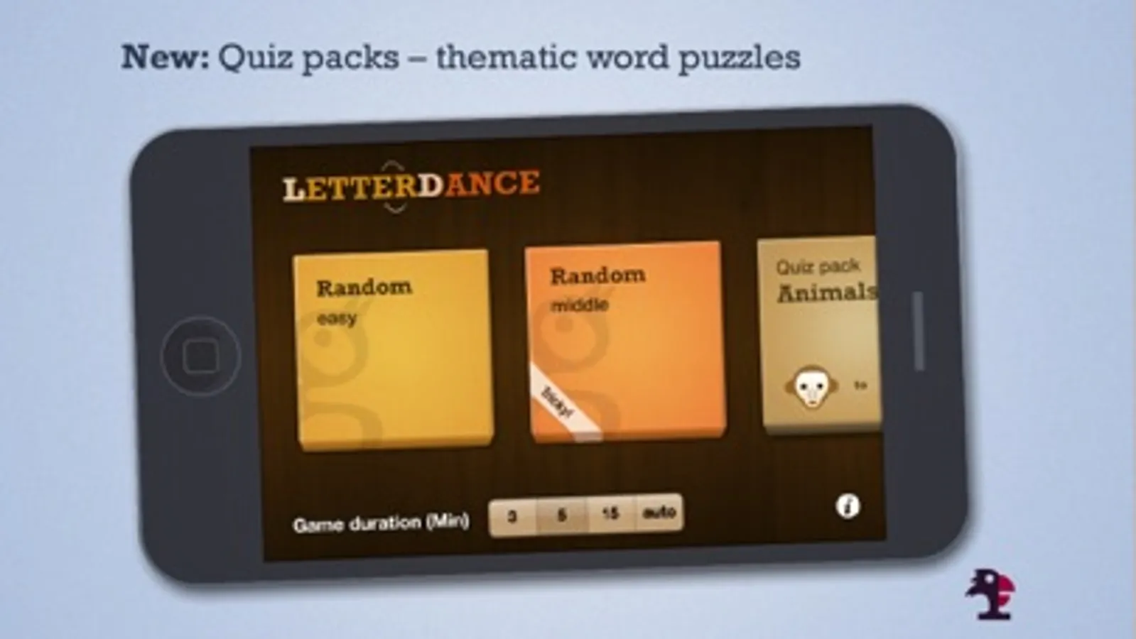 You can now choose from various thematical quiz packs. The packs Random easy and Random medium contain well mixed solution words of various difficulty. The other packs always have a solution from a particular topic and also contain more special words from this topic to combine.