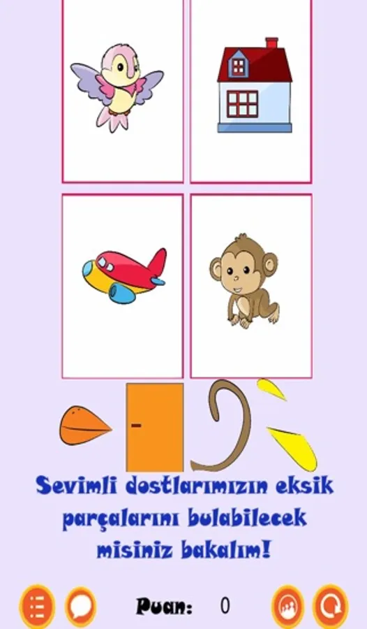 Uygulamamız bir oyun formatına sokulmuş ve 36 bölümden oluşmaktadır. İlk 5 bolümde resim eşlestirme, çiftleri bulma, şekillerin nereye ait olduklarını bulma, eksik parça tamamlama ve nesneleri doğru yerlerine yerleştirme temaları işlenmiştir. Bu ilk 5 bölüm tamamiyle ücretsiz olup çocuklarınızın bu oyunları oynarken ne kadar güzel vakit geçirdiklerini görmenize ve eğlenerek öğrenmelerine tanıklık etmenize yardımcı olacaktır.