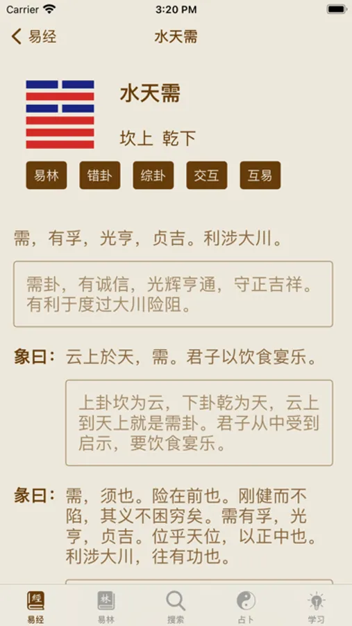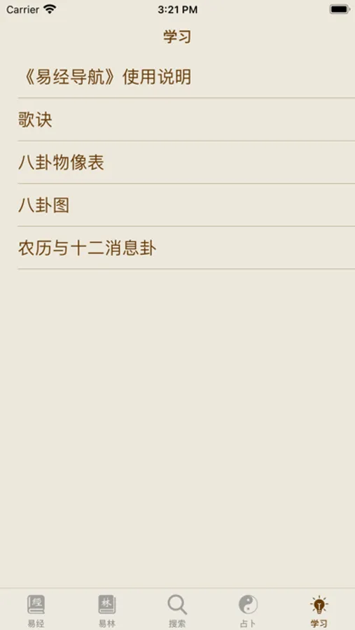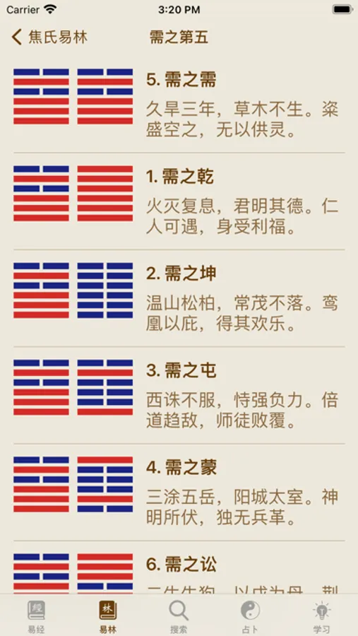 学习易林---新版易经导航HD 收录了《焦氏易林》4096卦,排列于64卦之中,以便习用户对照审阅。占卜者如能融汇贯通,参透易林变化之道,定能更上一层楼,收到不可思义之占卜效果。