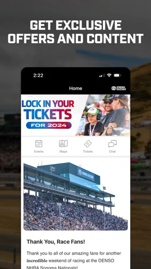 Welcome to the official app of the Sonoma Raceway, bringing fans closer to the action and enriching your event experience. Get all the info you need for race day and beyond, plus exclusive content, and personalized offers and experiences. This is a mobile experience to help you find what you love whether it’s event information, special access, or offers and discounts. Powered by Uphoria.