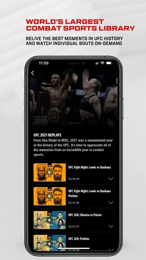 Stream live events every week on the world’s leading combat sports network with your UFC FIGHT PASS subscription. Get access to the world’s largest sports combat library with more than 35 combat sports partners.