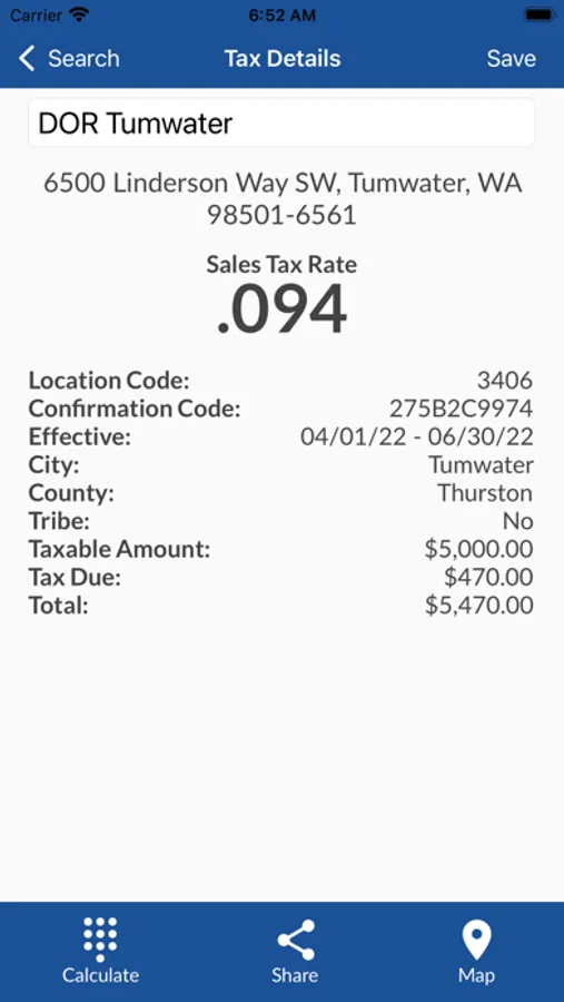 Whether you’re on a job site, delivering items, or in a store, check this app to verify the correct sales tax rate. Businesses with multiple work sites or delivery locations? Save, share, and export your list of locations, including calculated sales tax charges to streamline your bookkeeping.