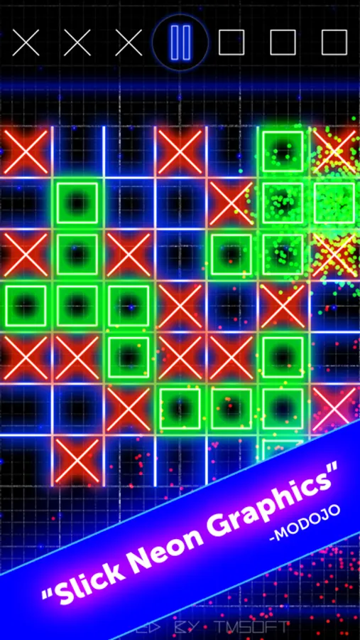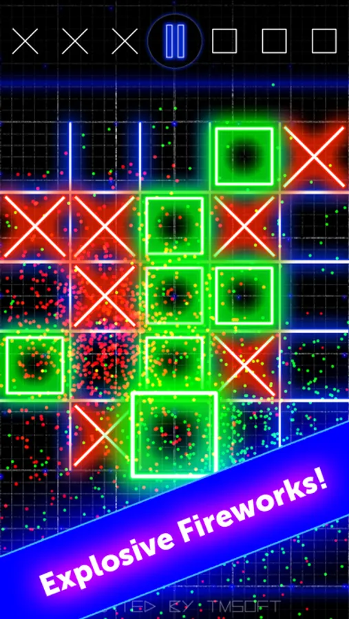 WHY IS IT THE BEST TIC TAC TOE GAME EVER CREATED? ⋆ Explosions ⋆ Fireworks ⋆ Glowing Effects ⋆ One and Two Players ⋆ Classic 3x3 Board ⋆ Extreme 5x5 and 7x7 Boards ⋆ Awesome Computer AI ⋆ Cool Sounds and Music ⋆ iOS Universal ⋆ Retina Graphics ⋆ Game Center Achievements