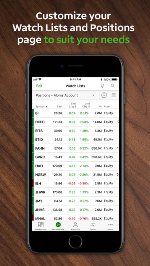 • Customize your experience by setting up your Positions and Watch List screens just the way you want