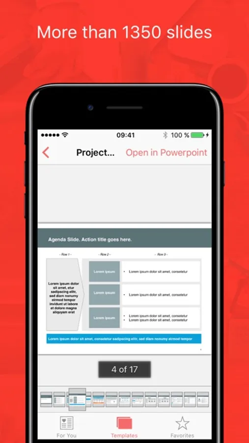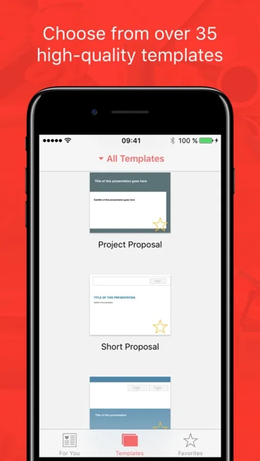 Templates for PowerPoint Pro provides 10 carefully designed PowerPoint Templates, over 100 different graphics and more than 150 slides for stunning business presentations. Export them quick and easy to your favorite mobile office application and start working on your presentations in just a few seconds.