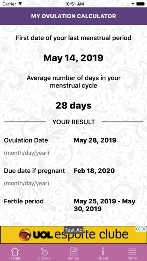 My Ovulation Calculator is a simple and easy to use application to calculate the time of ovulation and determine the fertile period. By just recording the first date of your last menstrual period and the average number of days in your menstrual cycle, your ovulation date and your fertile period will be shown. Being intimate during the fertile period greatly improves the chances for you to conceive. The app also shows the expected date of delivery if you happen to conceive at that time.
